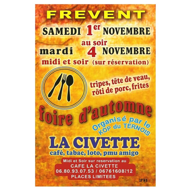 Lors de la Foire d'Automne, La Civette vous convie à une expérience culinaire chaleureuse et convivial les samedi 1er soir et mardi 4 novembre 2025 midi et soir :
