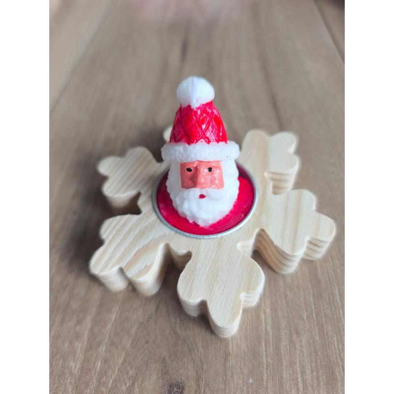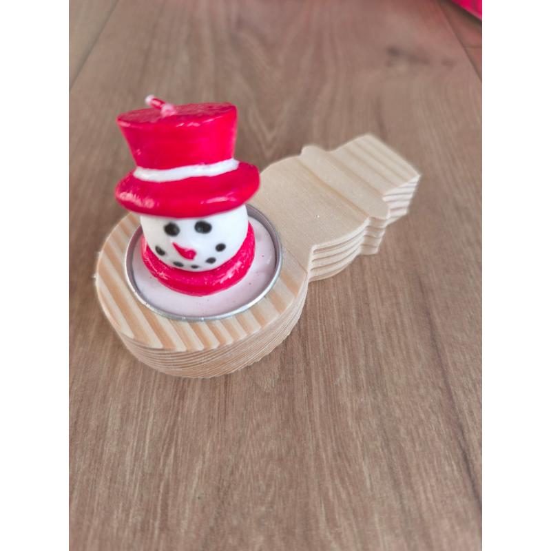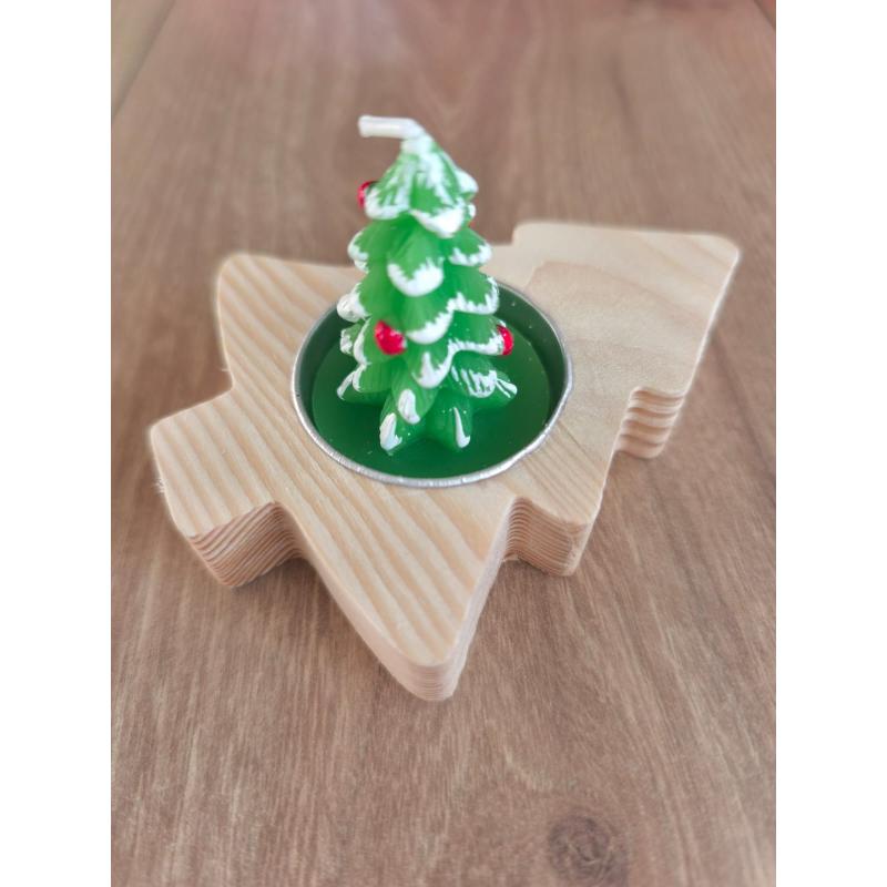Lot de 6 Bougeoirs en bois "Noël" avec 6 bougies