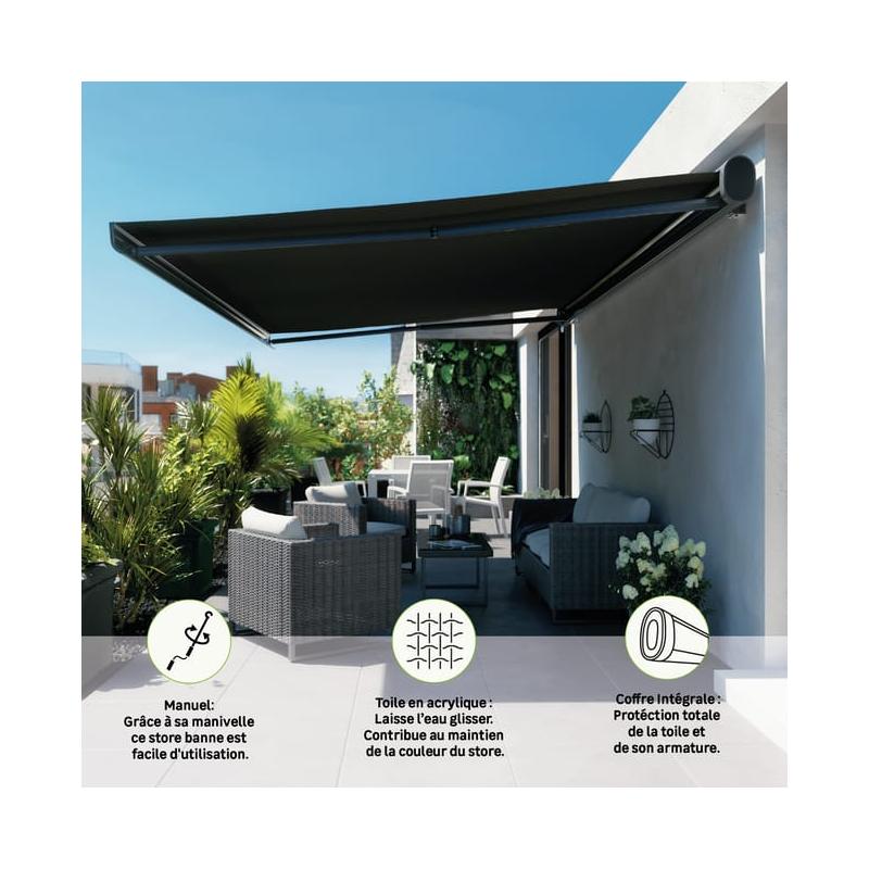 Store banne manuel 3.95 x 3 m Nori S gris, toile acrylique gris
