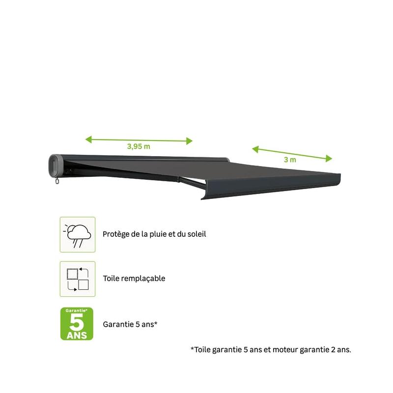 Store banne motorisé 3.95 x 3 m Nori 2 L gris LED, toile acrylique gris