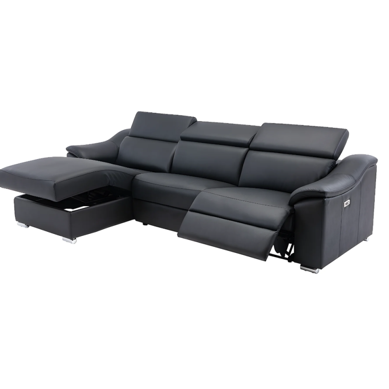 Canapé d'angle relax électrique en cuir supérieur noir PEDRERA - Angle gauche