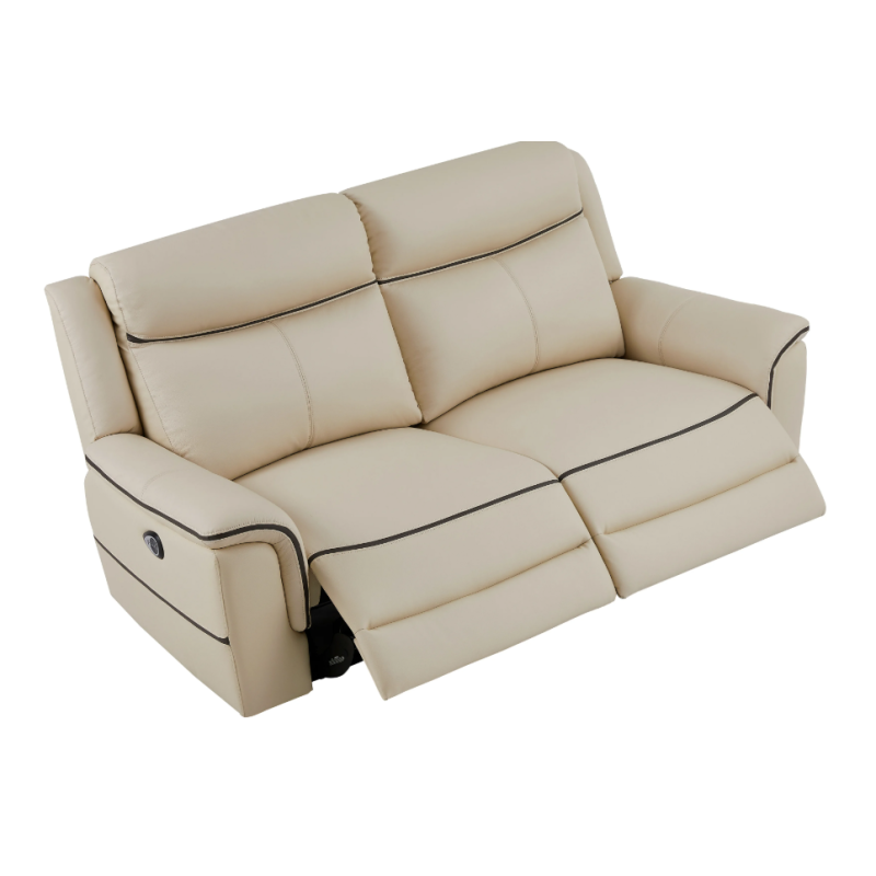 Canapé 3 places relax électrique en cuir beige ADELIO