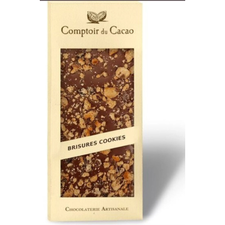 Liste des ingrédients : Chocolat pur beurre de cacao (minimum de cacao: 38%), sucre, pâte de cacao, poudre de plaitu entier, beurre de cacao, pépites de chocolat au plaitu, cacao maigre en poudre, farine de céréales (ubléμ, μavoineμ), μlaitu écrémé en poudre, poudre à lever (carbonate de sodium et acide citrique), émulsifiant (lécithine de usojau)