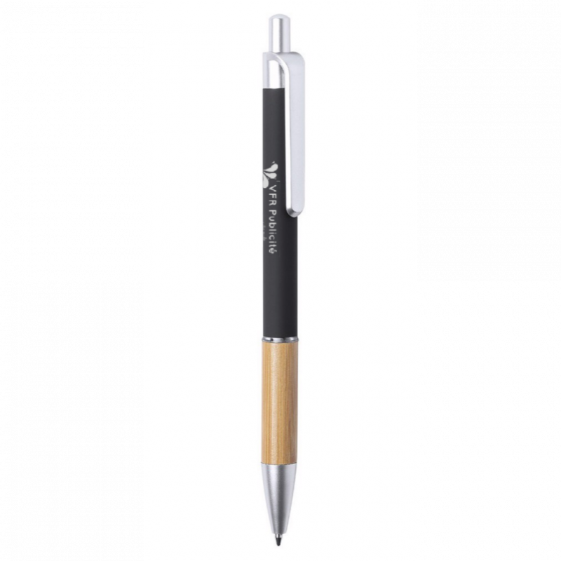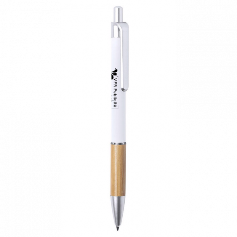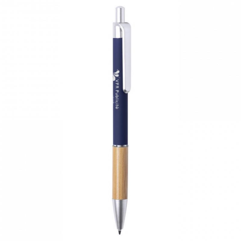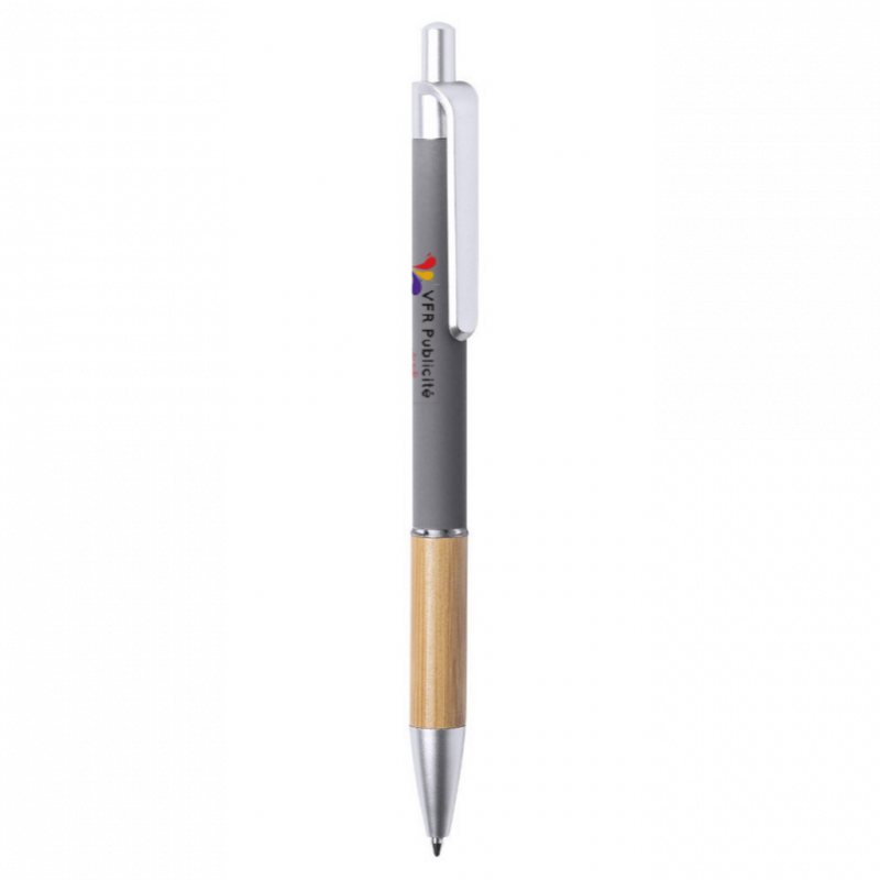 Stylo à bille de la ligne Nature avec mécanisme à bouton-poussoir. Design élégant avec corps en aluminium mat et grip en bambou, avec accessoires en finition mate. Clip avec finition de couleur métallisée et anneau transparent, avec recharge d'encre bleue. Disponible dans une large gamme de couleurs : noir, bleu, blanc, gris.