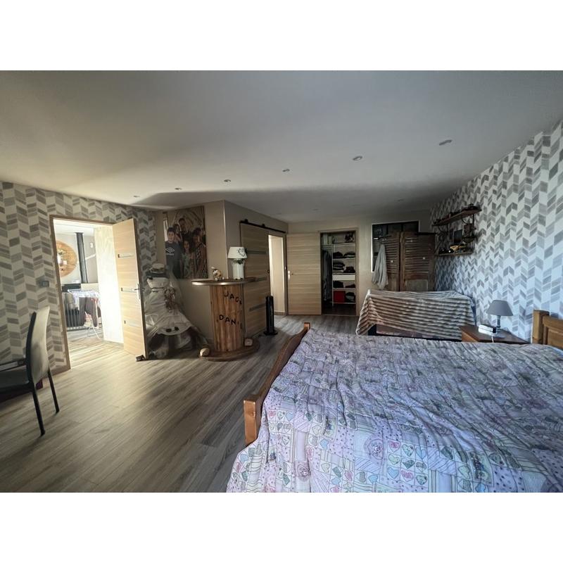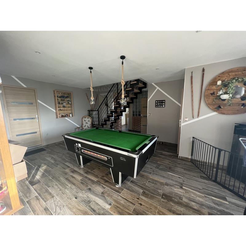 Cette propriété offre un espace de vie généreux et lumineux, parfait pour les grandes familles avec une grande pièce de vie comprenant une cuisine moderne et aménagée, un salon et salle à manger d'environ 85 m², une salle de billard de 28 m² et une belle suite parentale au rez-de-chaussée comprenant chambre, dressing, salle d'eau et WC.
