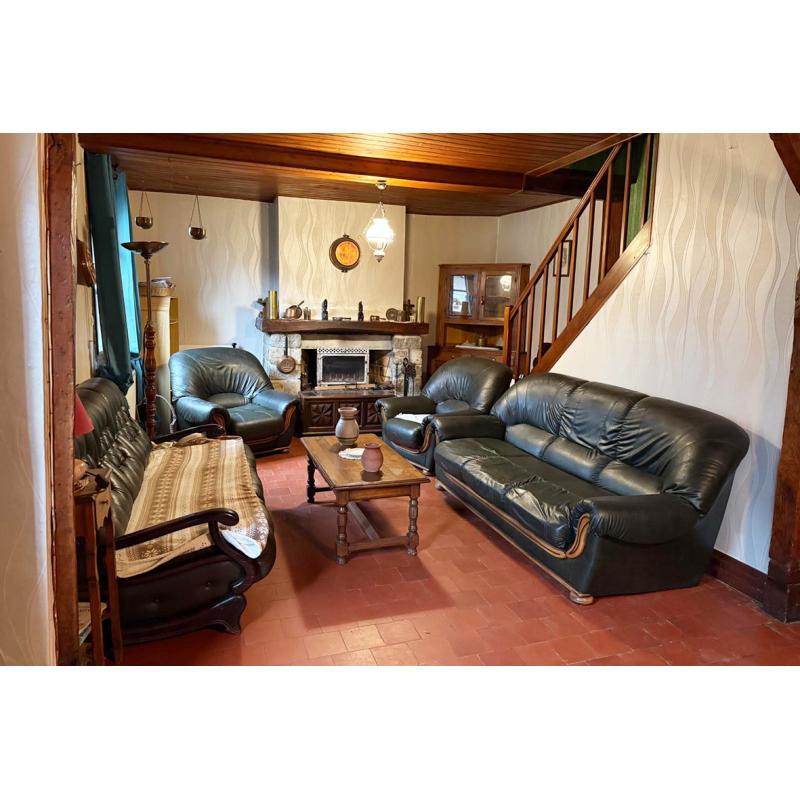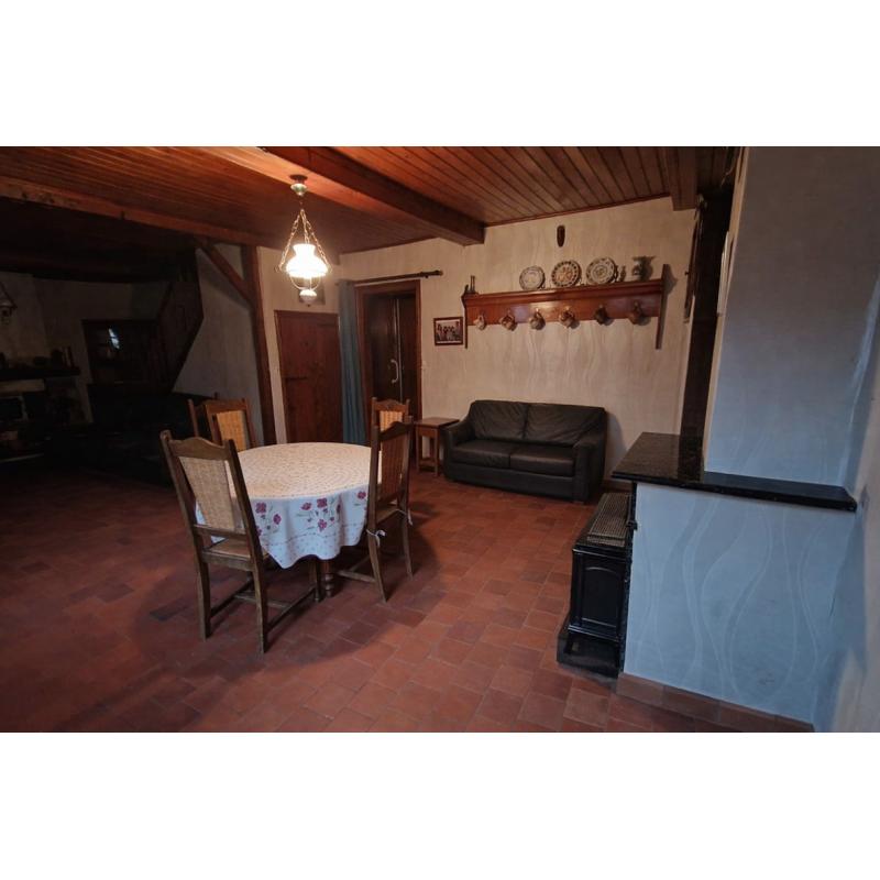 Charmante maison de village type longère, prête à être modernisée en un foyer chaleureux, tout en gardant son charme ancien avec ses poutres et ses tomettes.